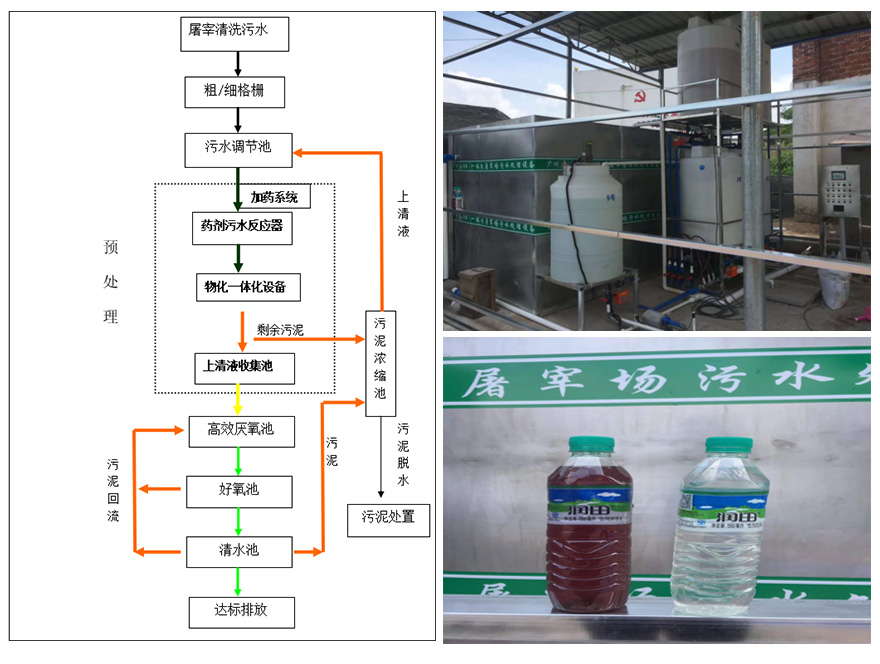 屠宰廠殺豬廢水中血主要含有液、油脂、碎肉、骨渣、毛及糞便等,廢水呈褐紅色,具有較強的腥臭味,水量大、排水不均勻、濃度高、雜質和懸浮物多等特點,同時該類污水水質變化較快,放置一段時間后水解酸化嚴重。