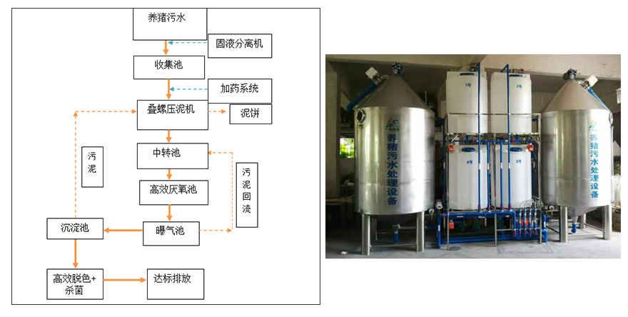 近年來集約化、規模化的畜禽養豬業迅速崛起。大部分養豬場對其糞污的處理利用不完善,對周邊環境的污染日益加重。養豬污水中主要以豬的糞便、沖洗豬舍用水、飲食滴落水以及消毒清洗水等組成。該類污水不僅含有高濃度有機污染物和高濃度固態懸浮物,而且富含氮、磷等營養元素,給豬糞廢水處理帶來很大難度。若不進行處理,會污染地面、土壤和地下水,對周邊環境帶來很大的危害。
